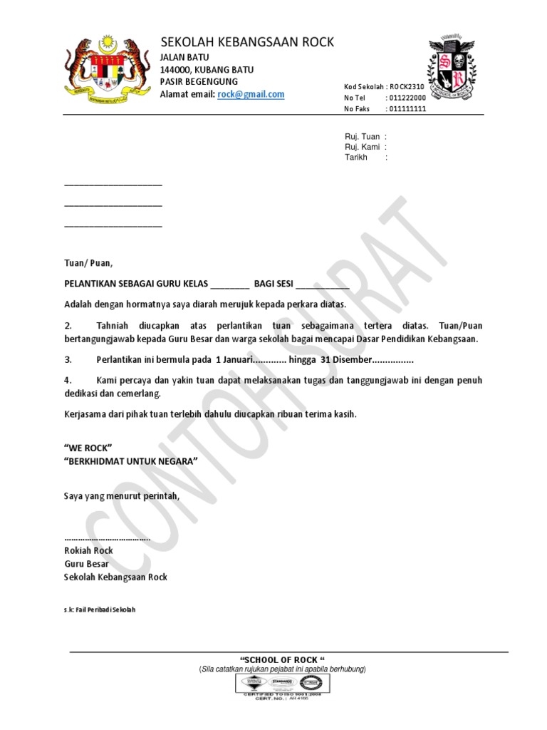Contoh Surat Lantikan Guru Kelas Pdf